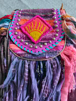 FRILL body cross Sari bag with ruffle -large detachable strap- beaded peace sign