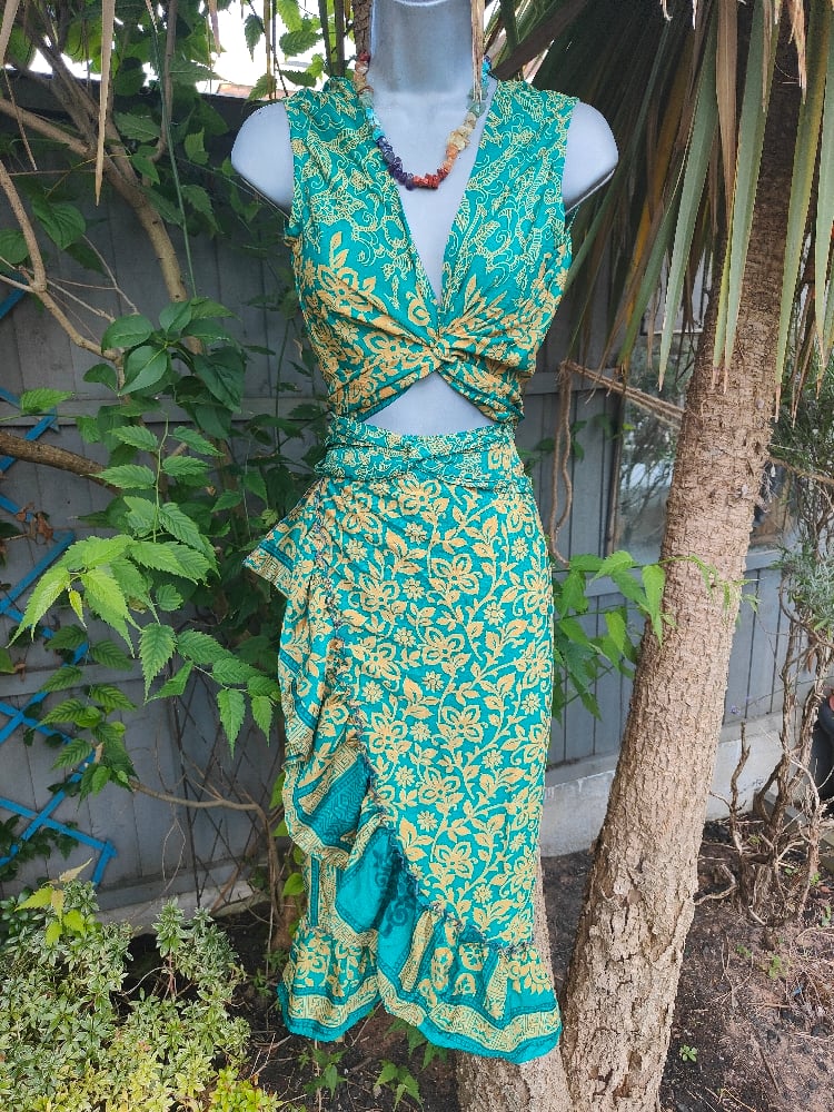 Pasha Co ord set top and frill wrap skirt - green