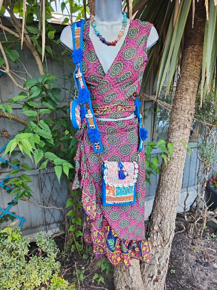 Pasha Co ord set top and frill wrap skirt - red and blue
