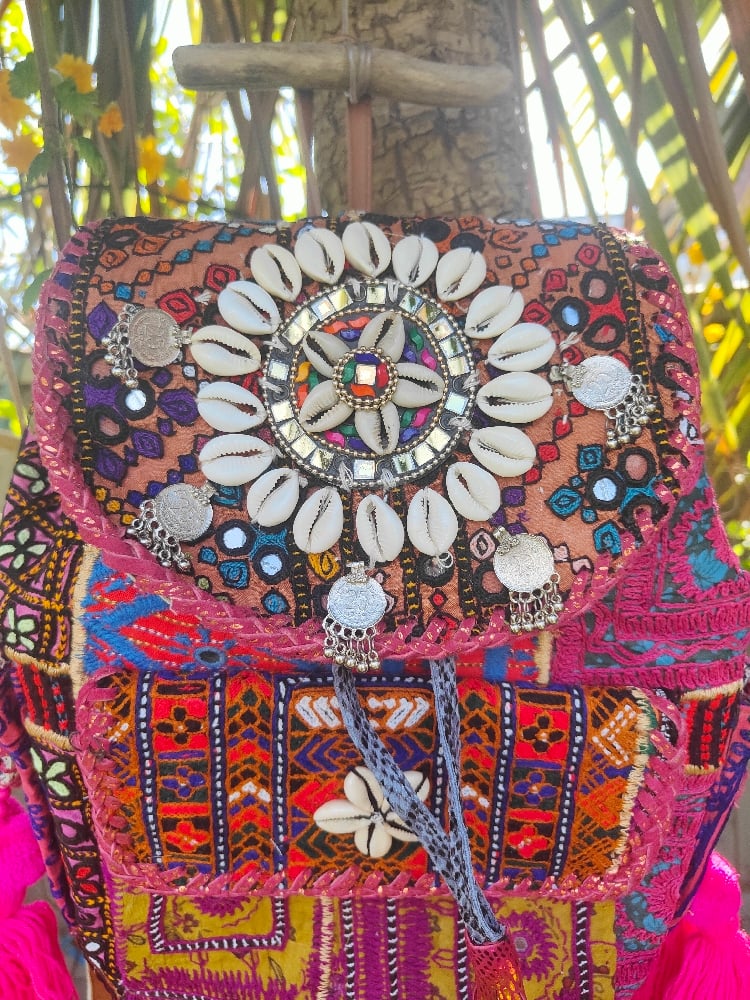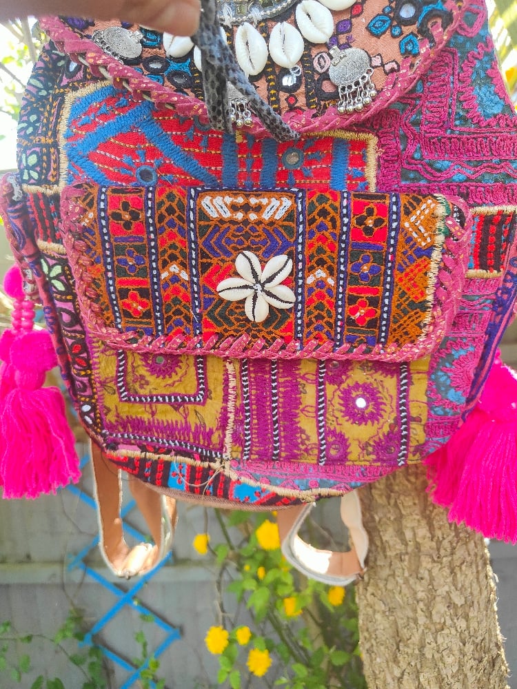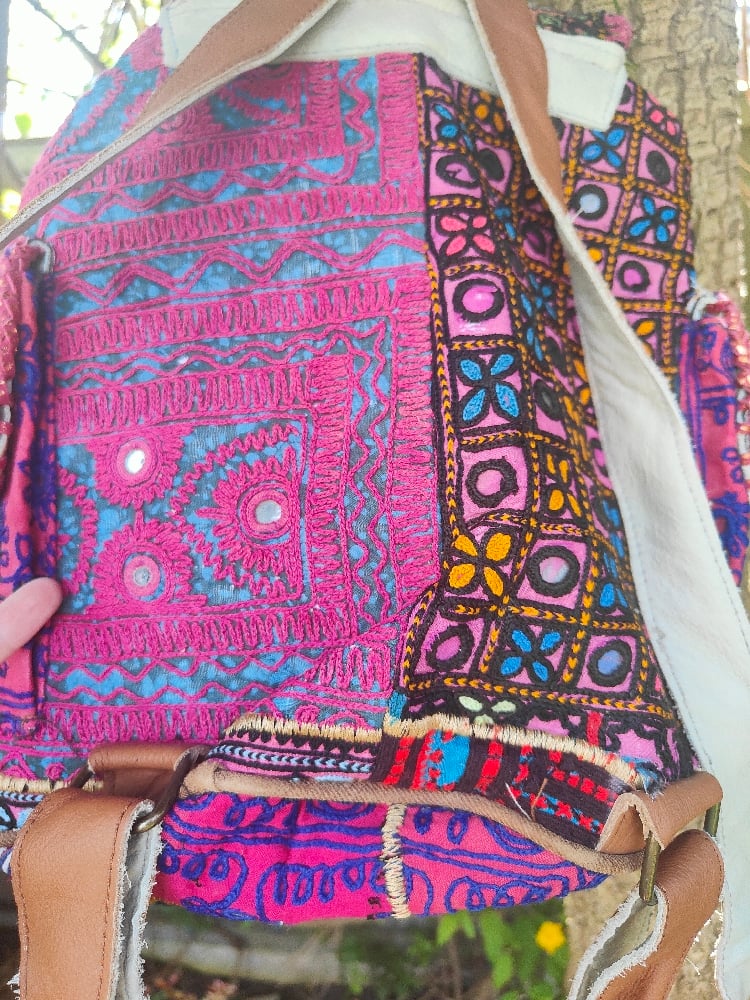 Made from vintage Afghan patches and charms